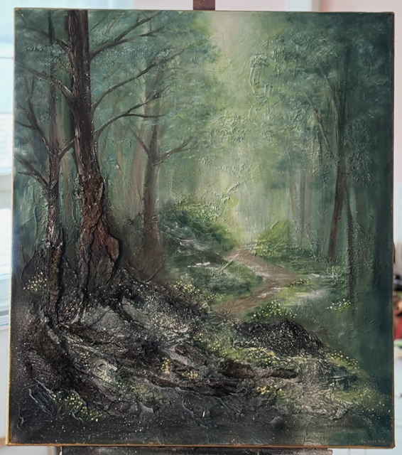Ihana strukturoitu akryylimaalaus, joka johtaa sinut rauhalliseen metsään. Maalauksesta löytyy mm kaarnaa ja runsaasti struktuuria. Maalaus on suojalakattu ja se on ripustusvalmis.