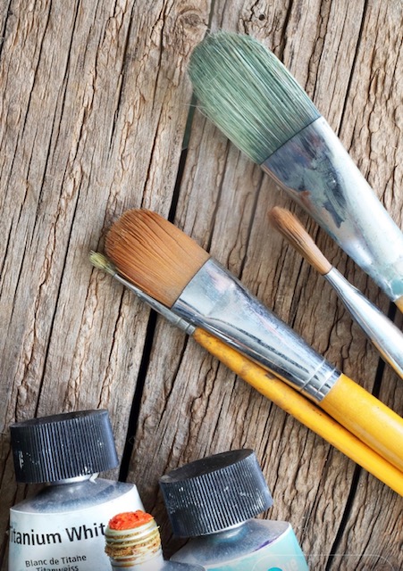- Myrkyttömät maalit, monipuolisesti välineitä työskentelyyn, ja kangastaulupohjan maalattavaksi ( koko 27x 35cm), sekä suojaessun.